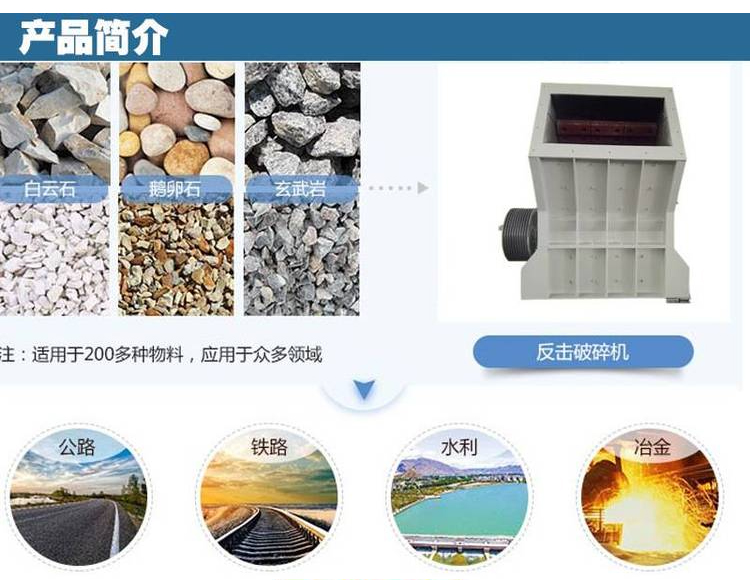 反擊式破碎機的適用范圍也是比較廣的,比如石灰石、花崗巖、鐵礦石等各種砂石和巖石之類的物料,反擊式破碎機也有不同的破碎設備的破碎腔來適用于不同物料的細碎;破碎腔的不同也是具有不同的破碎作業進而提供不同的砂石需求。鑒于多類型和優越的生產性能,反擊式破碎機在鐵路、建筑等眾多領域行業充分發揮了自身的價值,也得到更為廣泛的應用。